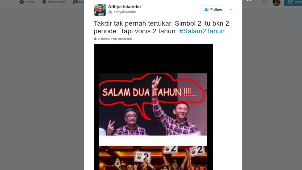 Pasca mengalami kekalahan dalam Pilgub DKI Jakarta 2017, Ahok justru divonis dua tahun penjara oleh majelis hakim Pengadilan Negeri Jakarta Utara karena dianggap ‘melecehkan’ agama Islam. Kalau pun Ahok adalah teman dekat dekat Jokowi yang saat itu menjabat Presiden, namun Jokowi tidak melakukan intervensi hukum apalagi Abolisi atau Amnesti.