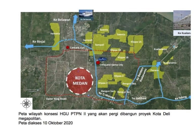 Kilas-balik, jauh sebelum bulan September – Oktober 2020 lalu beredar isu jika Ciputra Grup bersama PTPN II dan Pemerintah daerah Kab.Deli Serdang sedang sibuk ‘menggoalkan’ proyek KOTA DELI MEGAPOLITAN (KOTDELTAN), sebuah proyek pemukiman elite, Kota Deli Megapolitan yang akan ‘menelan’ 11 kampung yang dianggap bagian dari konsesi HGU PTPN II ini.