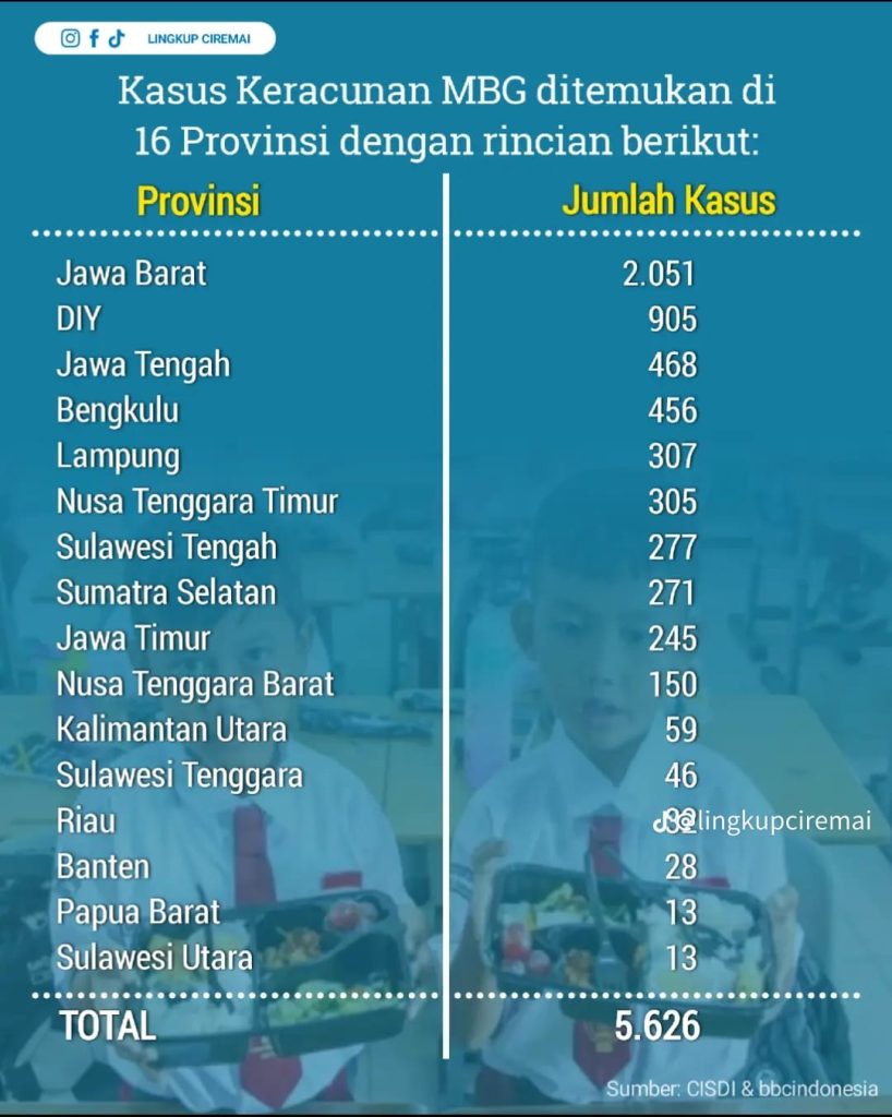 Bahkan Ombudsman RI mencatat terdapat 34 kejadian luar biasa (KLB) keracunan MBG dengan ribuan korban kepada anak-anak sejak awal diluncurkan pada awal 2025 hingga saat ini. Ombudsman pun berharap dengan adanya KLB ini, BGN sebagai pihak yang menangani program MBG, dapat menjadikannya sebagai sebuah pelajaran, dan dapat membuat program unggulan Presiden Prabowo Subianto ini, menjadi lebih baik.