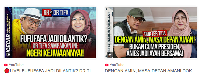 Refly juga ‘mendukung Dokter Tifa’ yang menuding jika Gibran ini menderita beberapa penyakit kejiwaan termasuk gejala Skizofrenia, obsesif kompulsif, psikopat dan adiksi seks. ‘Eheheh.