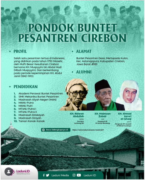 Seiring waktu, Pondok Pesantren Buntet Cirebon berada di urutan ke-6 dari 56 pondok pesantren yang dikategorikan sebagai lembaga pendidikan Islam tertua di Indonesia dengan jumlah santri dan alumninya lebih dari 4 juta orang yang menyebar aneka profesi baik nasional dan LN.