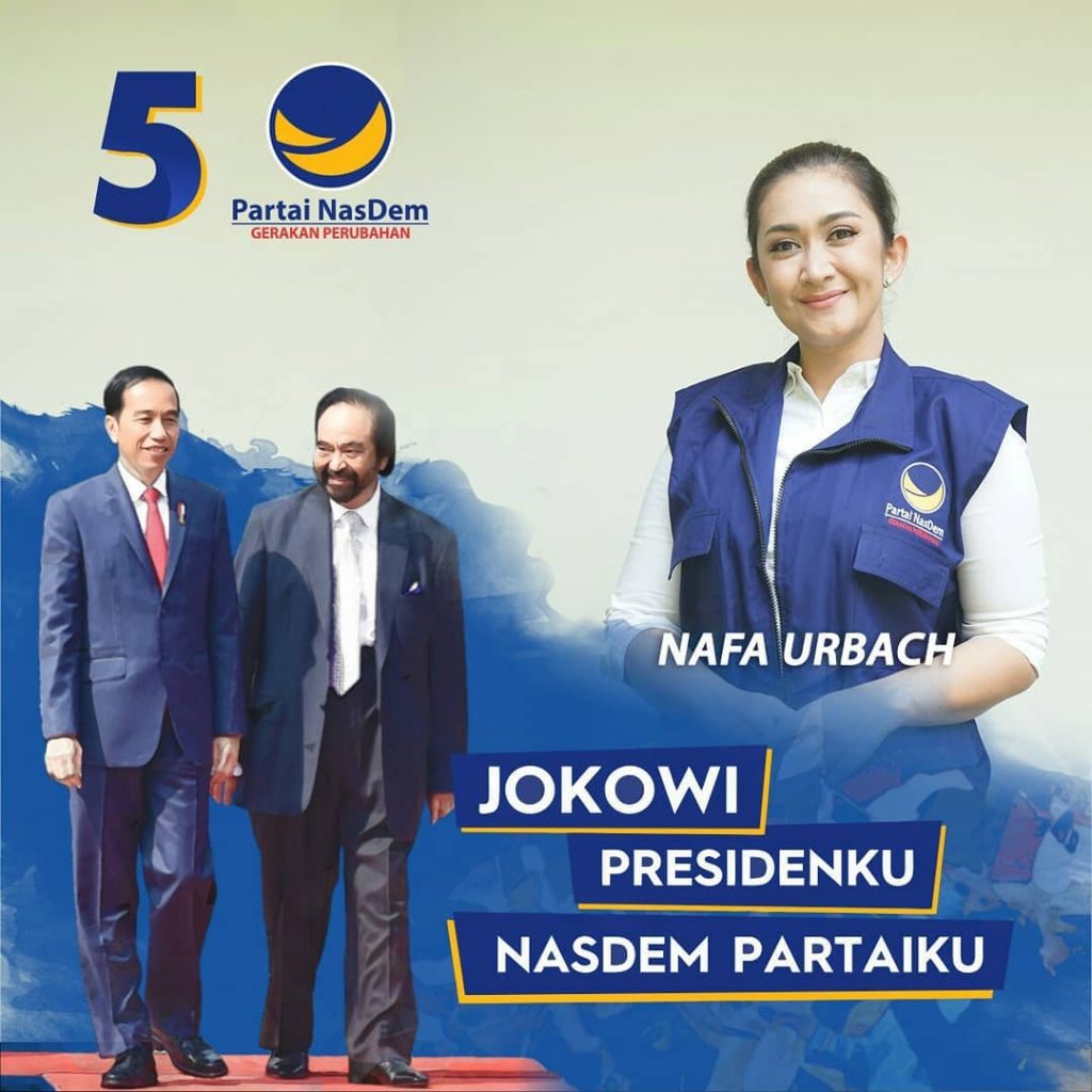 Sebagai salah satu kader partai politik yang mengusung Joko Widodo-Ma’ruf Amin, Nafa Urbach punya alasan tersendiri mengapa dirinya memberikan dukungan dua periode kepada Jokowi. Sayngnya di Pilpres 2024, Nafa ‘terpaksa’ mendukung Anies-Cak Imin sebagaimana kebijakan Nasdem. “Politik Tak Seindah di Layar Kaca”, kalimat itu yang terkenal sampai saat ini.